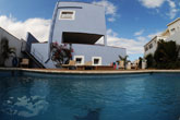 The house counts 4 bedrooms and two bathrooms in total. The bedroom sleeps two persons (twin beds) with an en suite shower room with a shower, toilet and bidet. Adjoining to the shower room is another bedroom with a double bed. The other spacious bathroom with a bath, bidet, shower and toilet, is located right next to a bedroom with a double bed and a generous sun terrace. Another bedroom offers sleeping facilities for two persons with twin beds and an adjoining children's bedroom with two cots and a chest of drawers. This bedroom looks out on the sun terrace. All the bedrooms are tastefully decorated in blue, white and magnolia shades of colour. Beautiful fabrics and sun shades provide an ideal environment for a siesta.